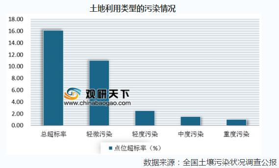 目前我国土壤污染情况严重,土壤总超标率为16.1%,部分地区土壤污染较重,耕地土壤环境质量堪忧,工矿业废弃地土壤环境问题突出。