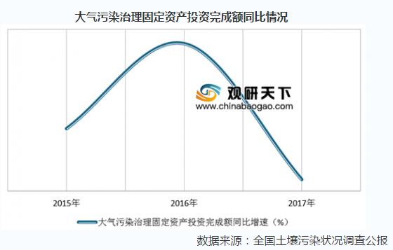 随着各地对环保政策的快速响应,环境污染治理固定资产投资完成额保持了高速的增长。数据显示,到2017年我国环境污染治理固定资产投资完成额增速达到了25.3%。