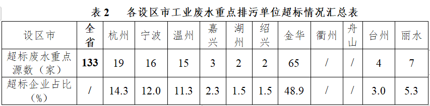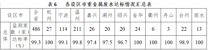 表1 各设区市工业废水重点排污单位达标情况汇总表