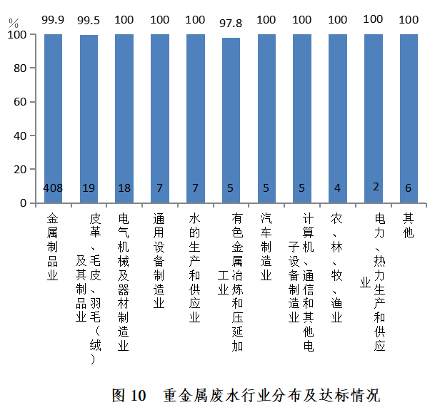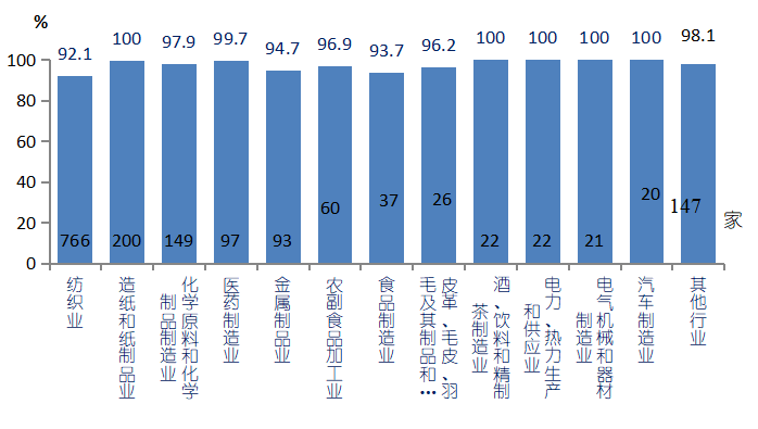 图1 工业废水行业分布及达标情况
