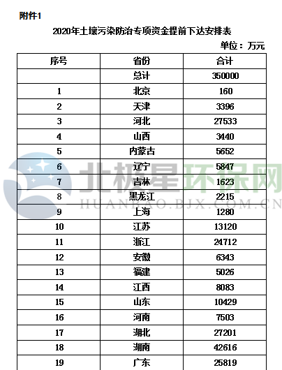 财政部提前下达2020年土壤污染防治专项资金,包含31省(直辖市)35亿元,详情如下: