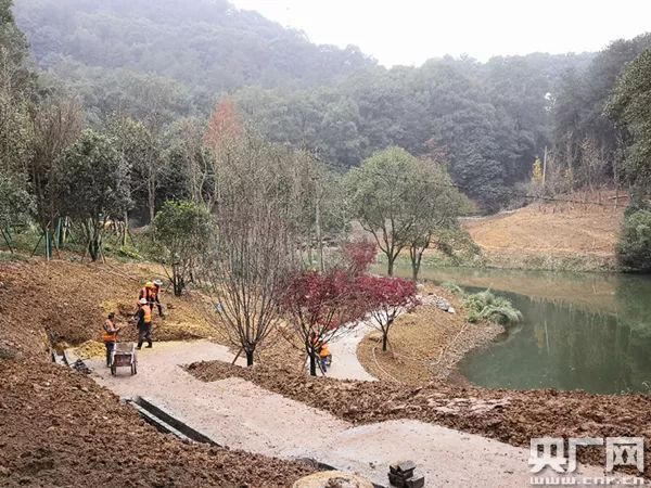在缙云山自然保护区实验区的黛湖畔,记者看到施工人员正在为裸土复绿,部分区域已经移栽上树木。此前分布在湖畔的四座少批多建、影响黛湖生态的酒店,均已被拆除。