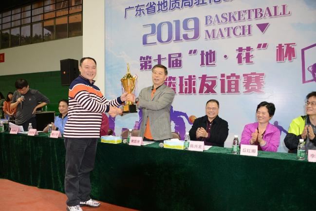 闭幕式上,陈兴龙巡视员宣读了“地?花”杯中各单位的比赛成绩,黄德发局长向测绘院球队代表颁发了冠军奖杯并宣布本届篮球赛圆满结束。