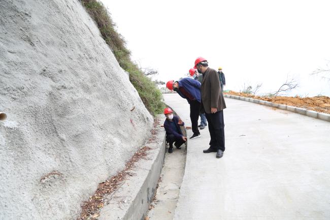“工程难度相当大,施工点高度集中,在鹿洞山南侧山体交叉施工作业点多达48处,加上进入施工作业面仅有一条上山土路,山路坡陡路窄急弯多,最陡坡度达23度,部分路面宽度仅2.8米,最宽处也不过3.5米。遇到下雨天,山路湿滑泥泞,稍有不慎就有滑坠的危险。大型机器无法进入道路施工现场,我们有针对性采用农用四驱车、履带车、小型铲车等小型灵活机械设备,选取合理材料中转点,采取多点辐射方式,逐步、逐段错开式施工,保障各施工作业点的有序推进。”项目部技术人员介绍说。