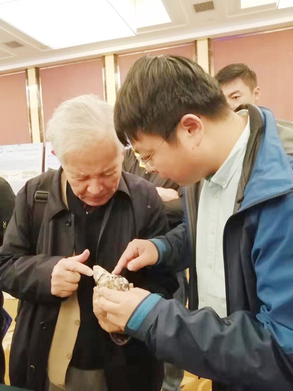南疆地区大型资源基地调查团队负责人高永宝向张国伟院士介绍矿石标本情况