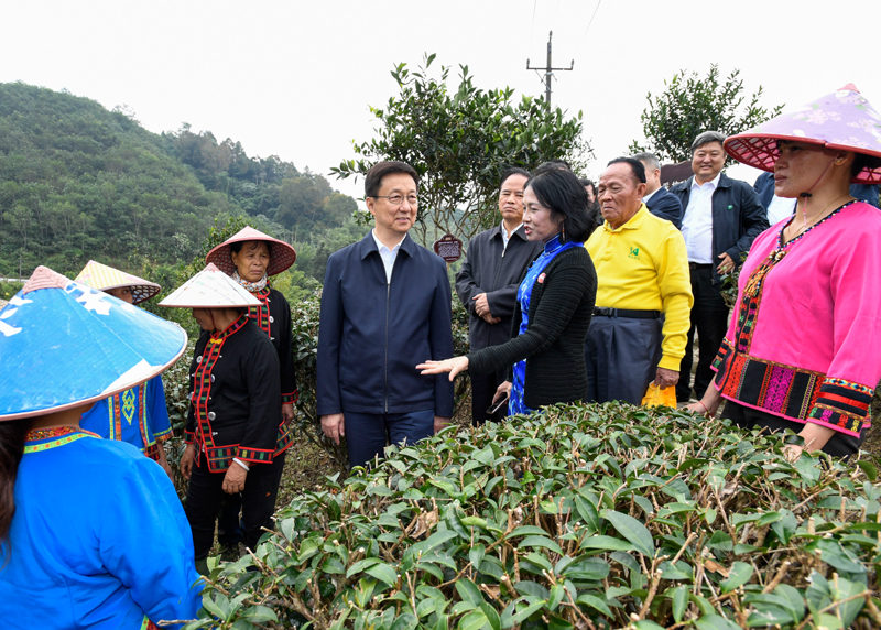 在五指山椰仙有机茶生态观光园,韩正了解高山雨林有机茶种植等特色产业培育、病虫害物理防治、种植产业和旅游产业融合发展等情况,与正在茶园工作的当地农民和贫困户交流。韩正指出,要充分发挥海南地理条件和生态系统的独特优势,挖掘生态保护蕴含的经济价值,大力发展绿色生态产业,推动农民增收致富。