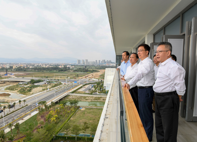 11月9日至11日,中共中央政治局常委、国务院副总理韩正在海南调研。图为11月10日,韩正走进三亚崖州湾科技城,听取三亚市总体规划和崖州湾科技城建设等情况汇报。新华社记者 高洁 摄