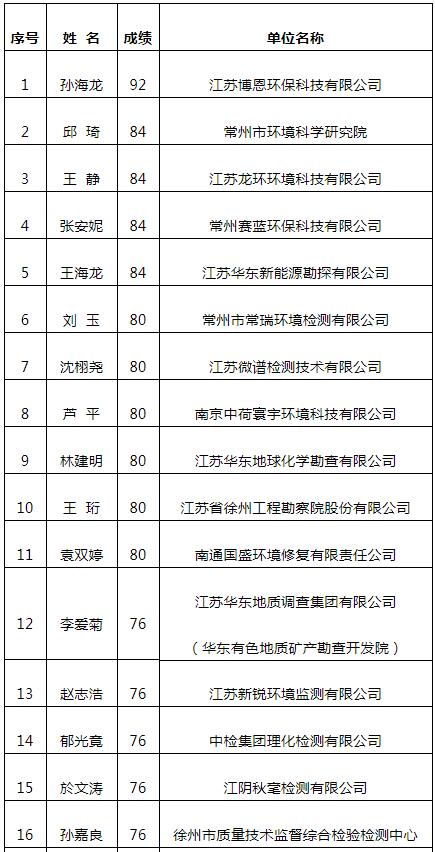 摘要 : 6北极星环境修复网获悉,江苏省发布重点行业企业用地土壤污染状况调查样品采集考核通过名单(第三批、第二批补考),详情如下: 重点行业企业用地土壤污染状况调查样品采集考核通过名单(第三批、第二批补考) 为推进我省重点行业企业用地调查工作,提前做好初步采样调查技术储备,我厅于9月20日组织举办了第三批重点行业企业用地调查样品采集现场实训班,同时组织前两批参训考核不合格人员进行了补考。现将通过考核(含补考)的人员名单予以公布。