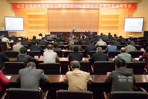 谢瑾瑜强调,各单位各部门要把深入学习宣传贯彻四中全会精神作为当前及今后一个时期的重大政治任务抓好抓实、抓出成效。一要切实加强领导。各级党组织主要负责同志要负起责任、靠前指挥,做到亲自抓、带头学,领导班子成员要抓好分管领域的学习宣传贯彻工作。二要厘清发展思路。要以自然资源创新发展为主线,以巩固深化主题教育成果为先导,谋划好贯彻落实党的十九届四中全会精神的思路举措,在坚决贯彻党中央精神、坚持国家立场、深刻把握国情、区情,深化改革创新上下功夫。三要全面抓紧抓实。各单位各部门要切实提高政治站位,紧密联系实际,结合自治区第四季度稳增长政策实际,全面落实厅党组全力服务第四季度稳增长的若干措施,推动自然资源工作提质增效,推动学习宣传贯彻四中全会精神不断走深走实。