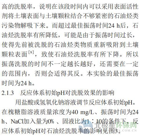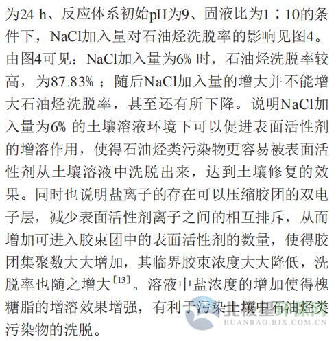 摘要 : 6[摘要] 采用内酯型槐糖脂(SL50)修复石油污染土壤(含油土壤)。通过单因子实验与正交实验,考察了槐糖脂溶液质量浓度、振荡时间、反应体系初始pH、NaCl加入量以及固液比(土壤质量与表面活性剂溶液体积之比)对污染土壤石油烃洗脱率的影响。单因子模型回归分析结果表明,参数变量均符合二次拟合模型,槐糖脂溶液质量浓度、 反应体系初始pH以及NaCl加入量的二次模型拟合效果较好。正交实验结果表明,槐糖脂溶液质量浓度和反应体系初始pH是该实验的敏感性因子,最优洗脱条件为槐糖脂溶液质量浓度40 mg/L、反应体系初始pH 9、NaCl加 入量6%(w)。