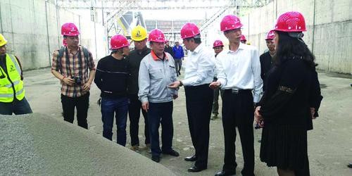 中国砂石协会会长胡幼奕(前右二)组织专家组成员到贵州遵义百旺建材公司调研机制砂石生产线