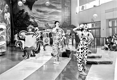 与其他演出“坐着看”不同,观众观赏《海洋你好——翕翕的奇幻之旅》时,需要按照北京海洋馆的参观路线,跟着专业演员一边走一边欣赏演出。鲨鱼小镇、白鲸湾等场馆“变身”演出现场,专业演员随时可以与观众进行近距离互动。在演出中,一只被塑料袋套住的“海豚”最终被人类救出的情节让在场观众唏嘘不已。
