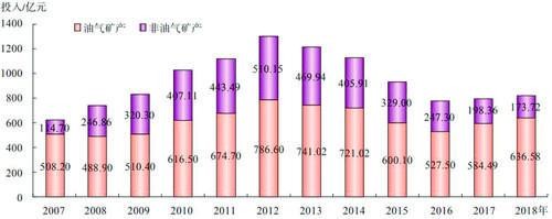 自然资源部发布的《中国矿产资源报告2019》显示,我国地质勘查投资也继续回升。2018年,全国地质勘查投资810.3亿元,较上年增长3.5%,继2017年首次回升后继续回升。其中,油气矿产地质勘查投资636.58 亿元,增长8.9%;非油气矿产地质勘查投资173.72亿元,下降12.4%。页岩气、天然气水合物勘查取得新突破。石油、天然气、锰、钴、铅锌、金、锂、石墨等战略性矿产找矿成果较为显著。