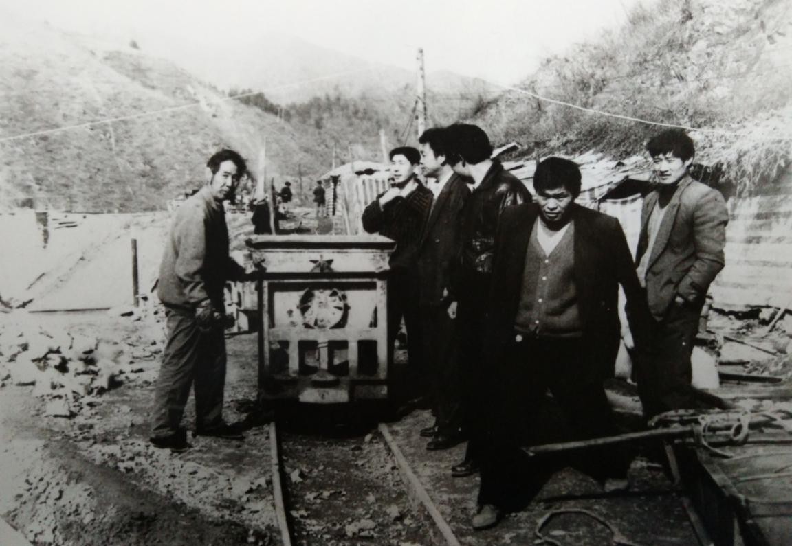 上世纪90年代,在前河金矿440斜井口的推车班工人。