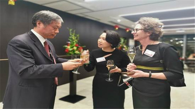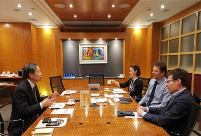 图为彭齐鸣会长一行同英美集团英美集团战略与事业发展总监Duncan Wanblad会谈