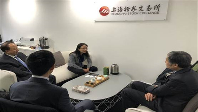 图为彭齐鸣会长一行与上海证券所驻英国办事处首席执行官杨智颖会谈