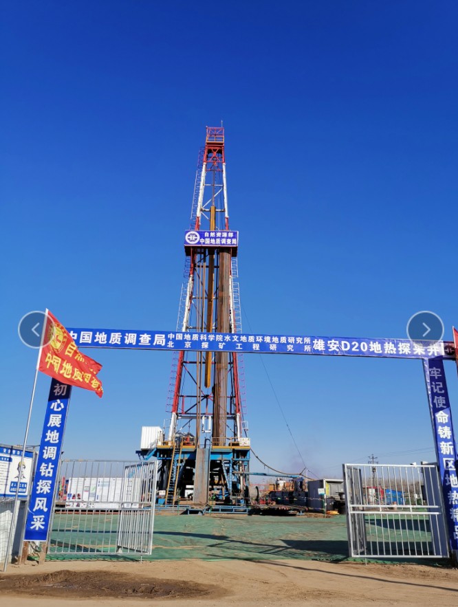 钻机的研制人员深入现场,安装设备,培训设备操作人员,开钻后24小时跟班进行技术支持和服务,极大地提高了工作效率,保证了现场的技术支持及时有效,有力支撑了雄安新区地热清洁能源调查评价项目的钻探工程。应用工程实施过程中,钻机克服超硬燧石层难钻进技术难题,每千米平均电能消耗相比同项目传统钻机作业的D14井低30%。目前,钻获雄安新区起步区最大地热产能的地热井,钻机已经圆满完成D20井的钻探工作,充分验证了钻机的设计参数,展现了钻机设计上的先进性、可靠性、实用性和操作的上简捷、安全、高效,开拓了永磁直驱钻机在大口径能源资源钻探工程的应用前景,为雄安、京津冀地区乃至全国地热资源钻探地质调查提供了借鉴与指导。