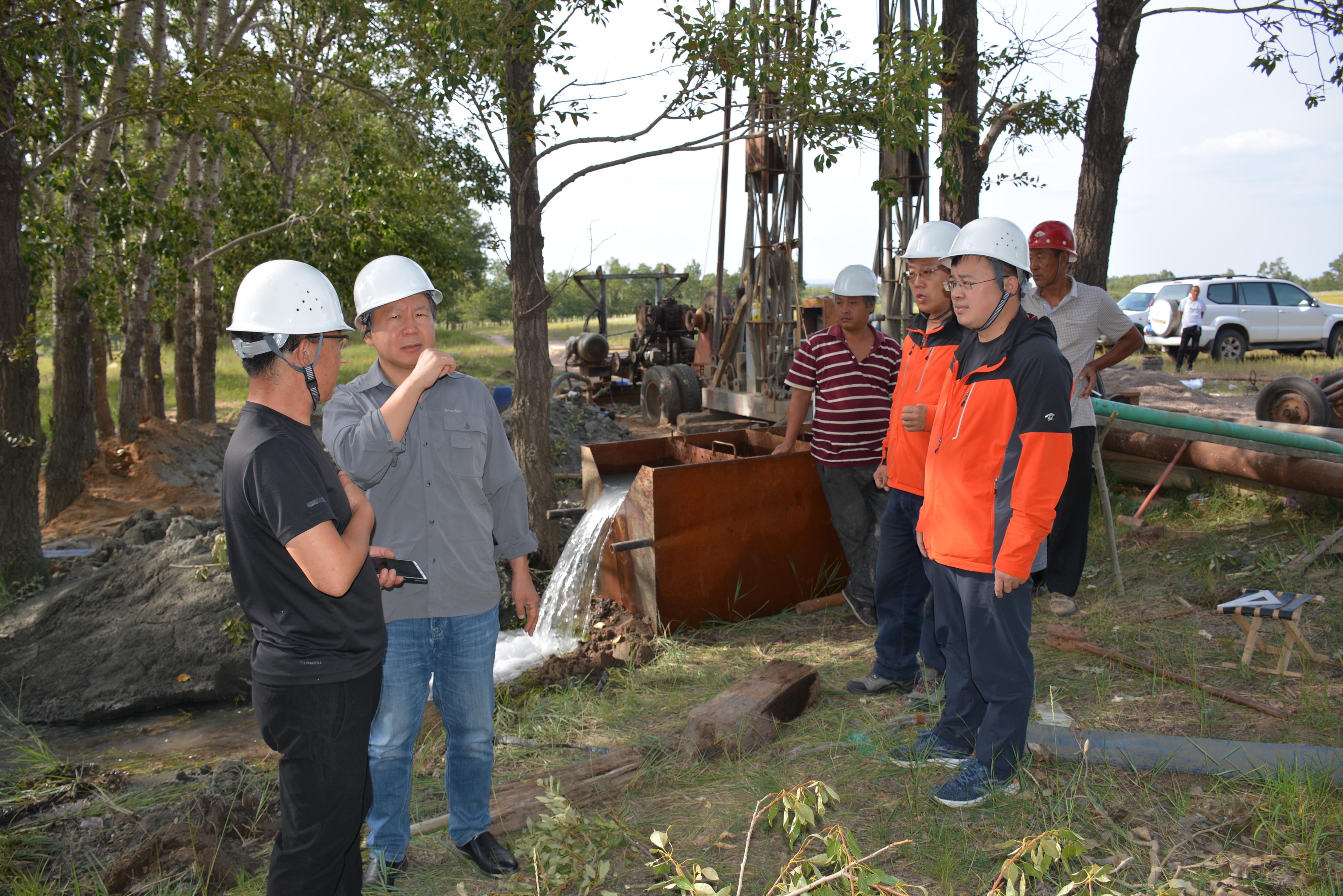 水环中心太行山项目组以地质为基础,物探为先导,钻探为保障,圈定靶区后先后采用了高密度、音频大地电磁测深等方法互相验证,最后共同会商,综合确定了1眼井位。项目组技术人员克服工期紧张,钻探软硬相间地层和冲洗液漏失严重等诸多困难,经过夜以继日的紧张施工,最终于8月18日成井,终孔深度156米,单井涌水量854立方米/天,现场检测水质优良。